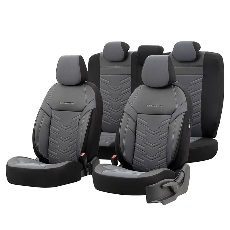 Καλύμματα Αυτοκινήτου Otom Reflective Design Universal Jacquard Rachel Δερματίνη Σετ Εμπρός Πίσω 11 Τεμαχίων Μαύρο – Σκούρο Γκρι RFL-2603