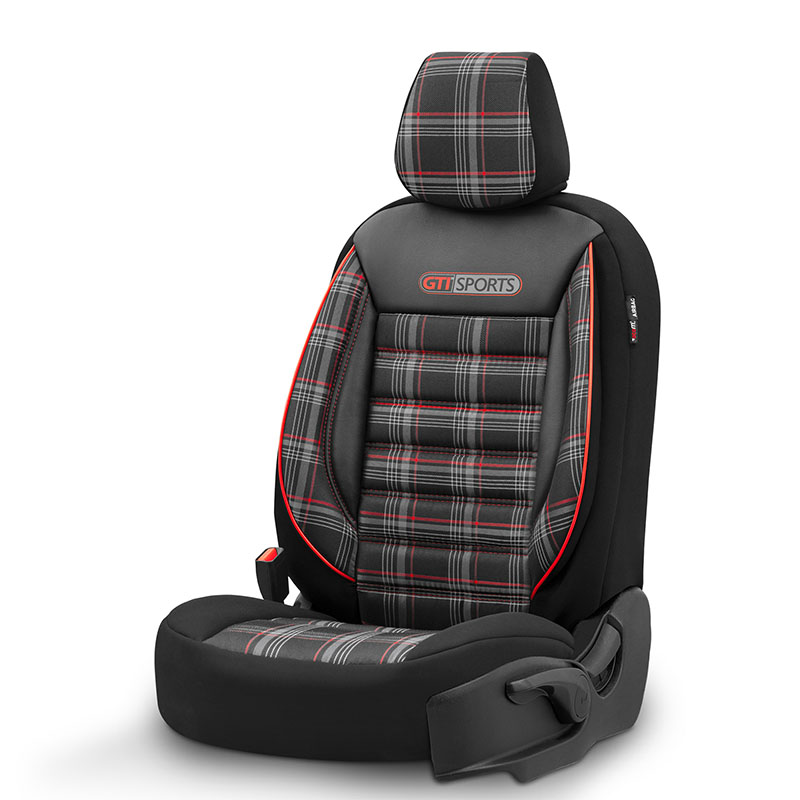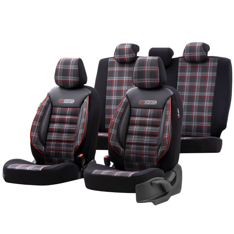 Καλύμματα Αυτοκινήτου Otom GTI Sports Design Universal Jacquard Lacost Δερματίνη Σετ Εμπρός Πίσω 11 Τεμαχίων Μαύρο – Κόκκινο GTI-801