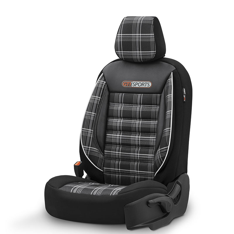 Καλύμματα Αυτοκινήτου Otom GTI Sports Design Universal Jacquard Lacost Δερματίνη Σετ Εμπρός Πίσω 11 Τεμαχίων Μαύρο – Γκρι GTI-807