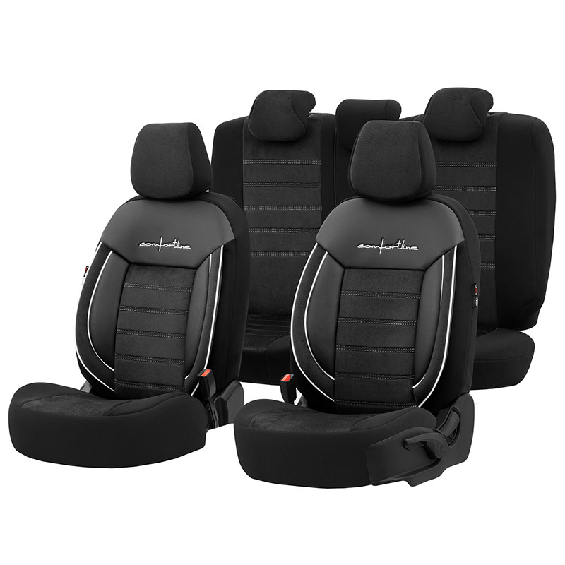 Καλύμματα Αυτοκινήτου Otom Comfortline Design Universal Sued Rachel Δερματίνη Σετ Εμπρός Πίσω 11 Τεμαχίων Μαύρο Με Άσπρο Ρέλι CMF-217