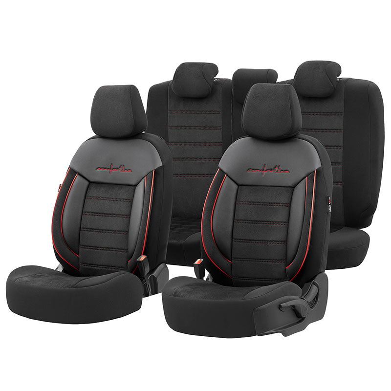 Καλύμματα Αυτοκινήτου Otom Comfortline Design Universal Sued Rachel Δερματίνη Σετ Εμπρός Πίσω 11 Τεμαχίων Μαύρο Με Κόκκινο Ρέλι CMF-218
