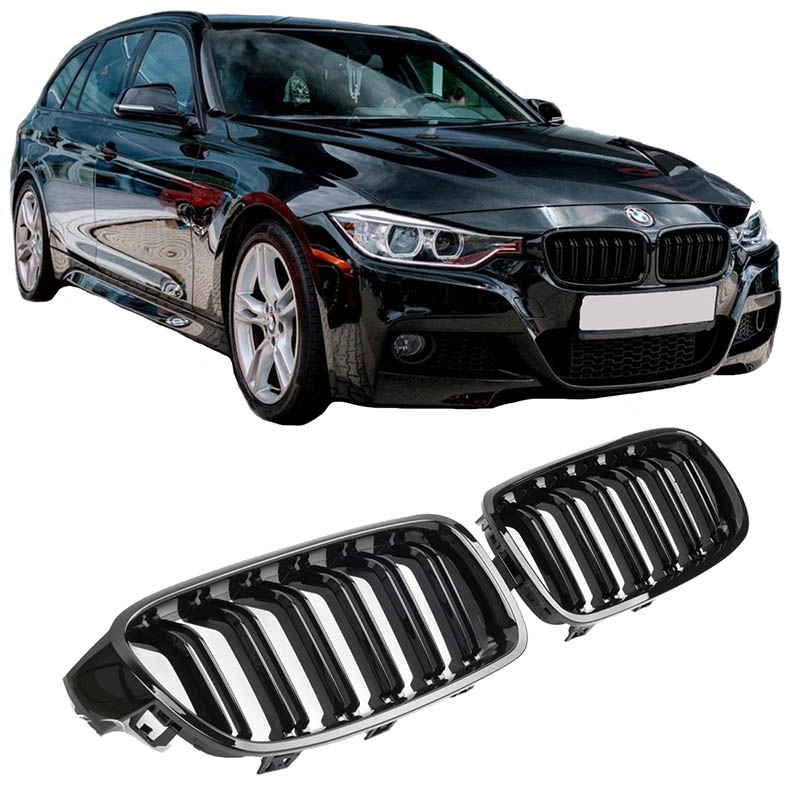 Καρδιές Μάσκας Για Bmw 3 F30 F31 11-18 M4 Look Με Διπλή Γρίλια Μαύρο Γυαλιστερό Με 2 Τεμάχια