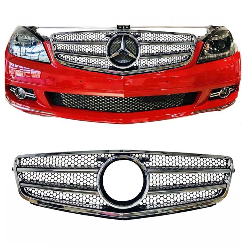 Μάσκα Για Mercedes-Benz C-Class W204 07-14 Amg C63 Look Με 2 Γρίλιες ΜαύροΧρώμιο 1 Τεμάχιο