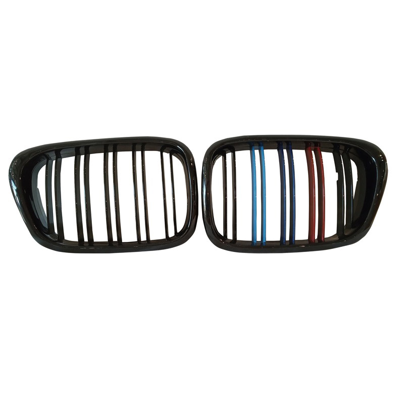 Καρδιές Μάσκας Για Bmw 5 E39 96-03 M4 Look Με Διπλή Γρίλια Tri-color Μαύρο Γυαλιστερό 2 Τεμάχια