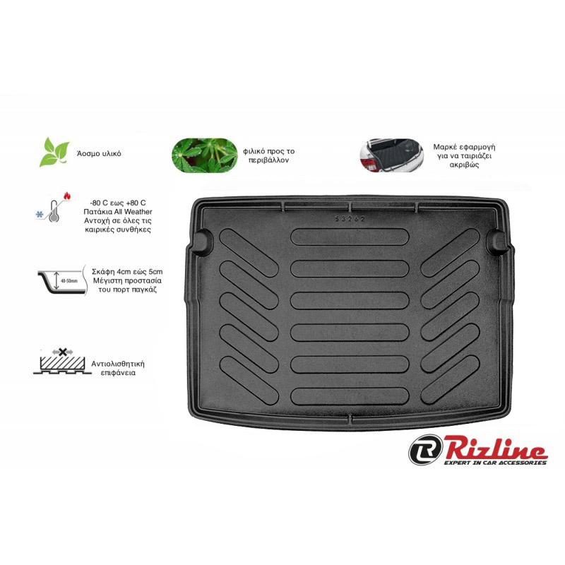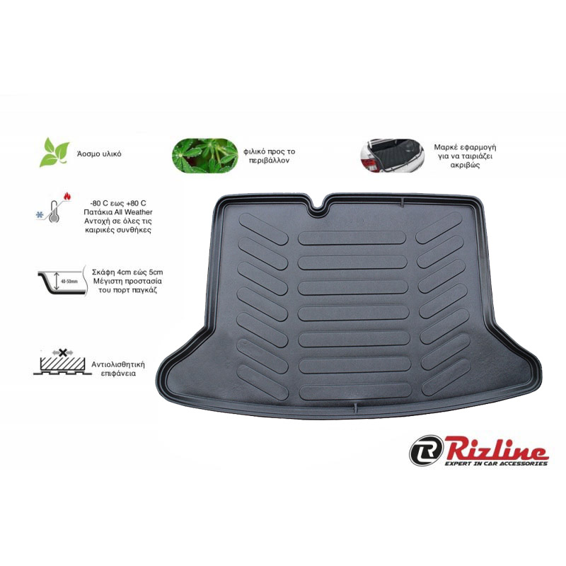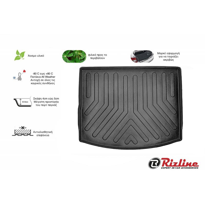 Πατάκι Πορτ-Παγκάζ 3D Σκαφάκι Από Λάστιχο TPE Για Skoda Rapid Hatchback 2013- Μαύρο Rizline