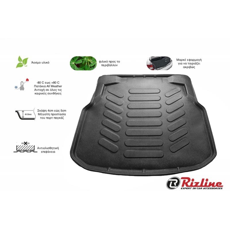 Πατάκι Πορτ-Παγκάζ 3D Σκαφάκι Από Πλαστικό TPE Για Mercedes-Benz C-Class W204 2007-2013 Μαύρο Rizline