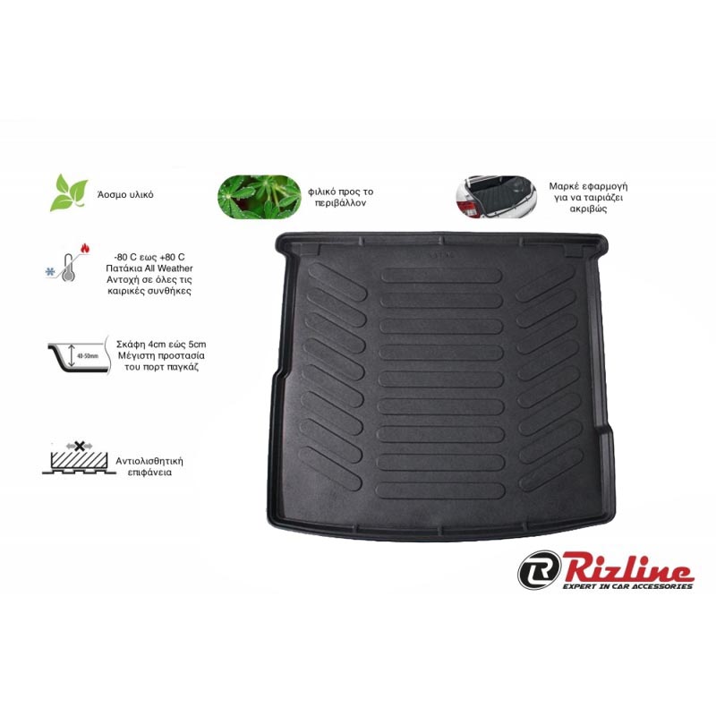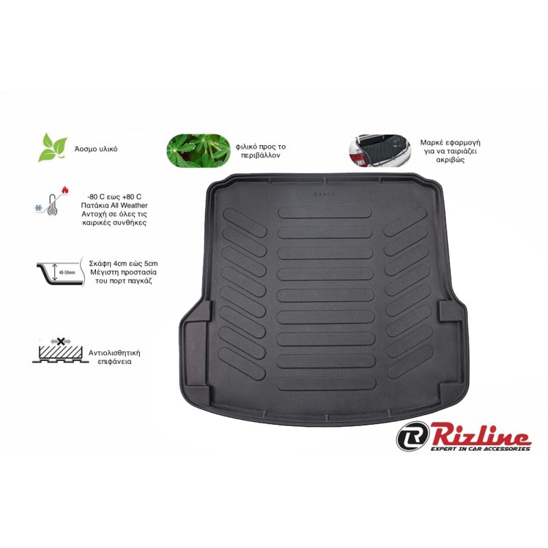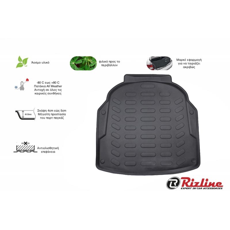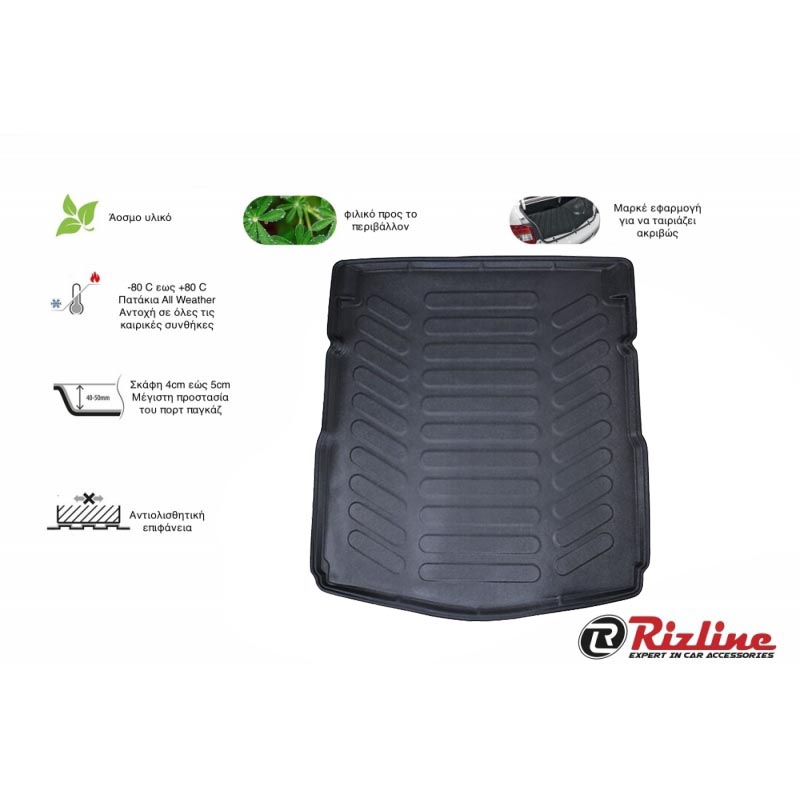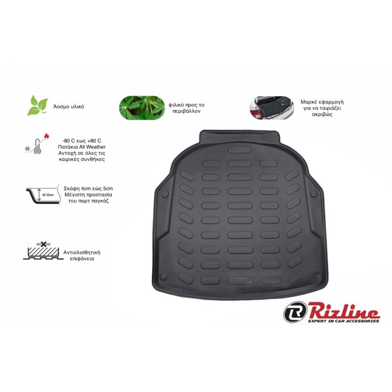 Πατάκι Πορτ-Παγκάζ 3D Σκαφάκι Από Λάστιχο TPE Για Skoda Octavia Α5 2005-2012 Τετράθυρο & Καραβάν Μαύρο Rizline
