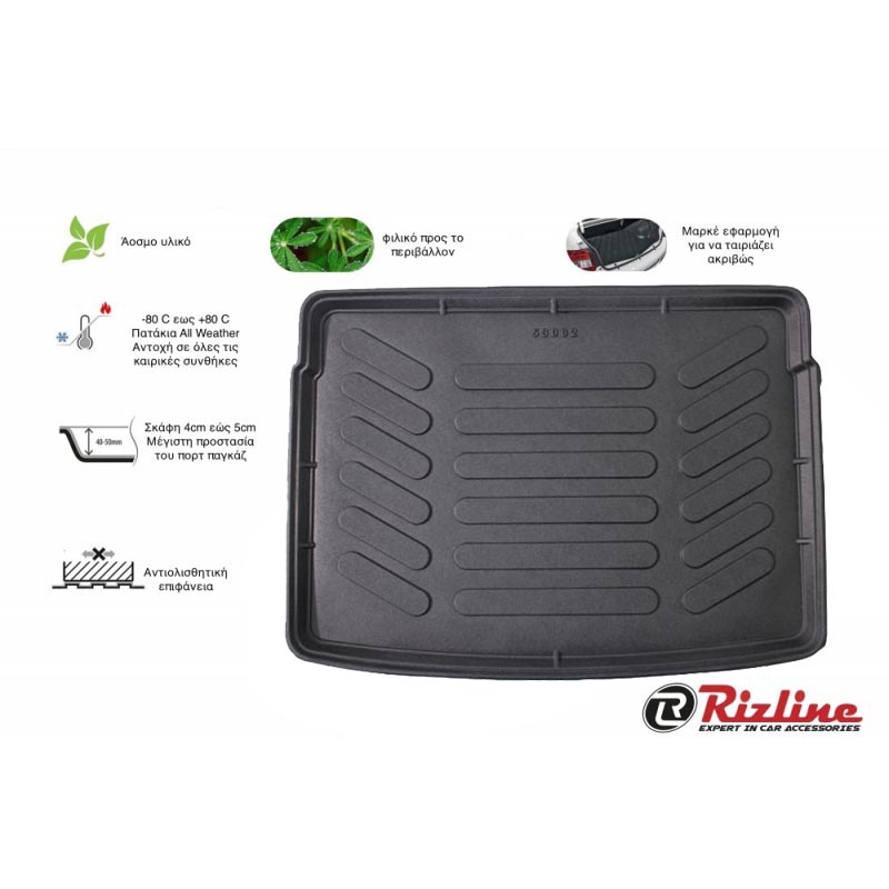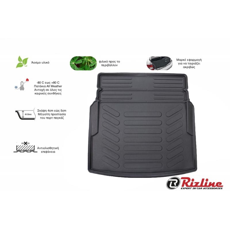 Πατάκι Πορτ-Παγκάζ 3D Σκαφάκι Από Λάστιχο TPE Για Mercedes-Benz C-Class W205 2015- Μαύρο Rizline