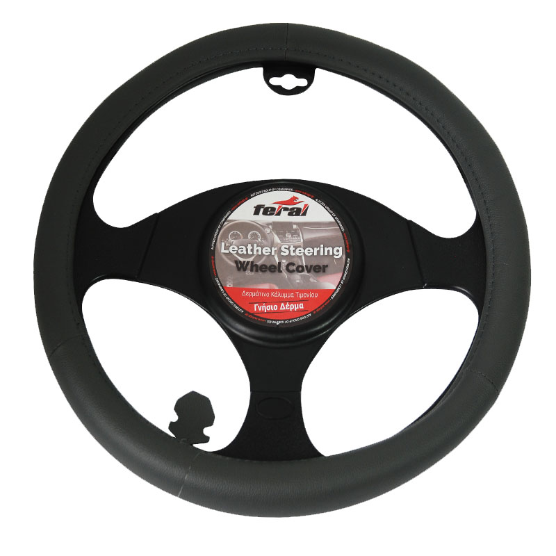 Κάλυμμα Τιμονιού Αυτοκινήτου Δερμάτινο Λείο Γκρι Large 40cm