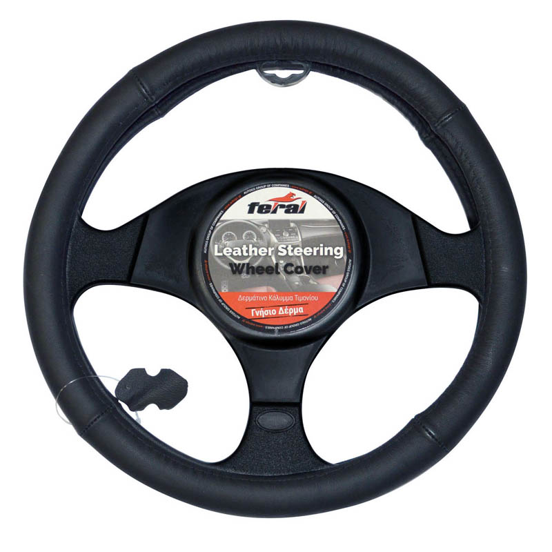 Κάλυμμα Τιμονιού Αυτοκινήτου Δερμάτινο Λείο Μαύρο Large 40cm
