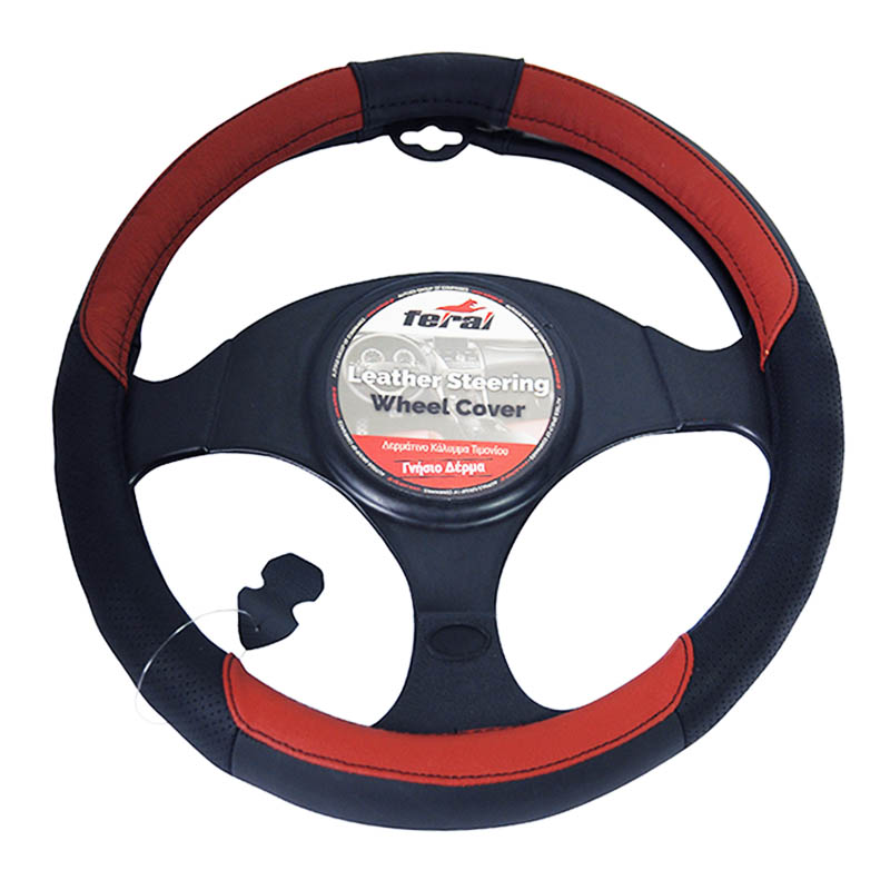 Κάλυμμα Τιμονιού Αυτοκινήτου Δερμάτινο Λείο Τρυπητό ΜαύροΚόκκινο Medium 38cm