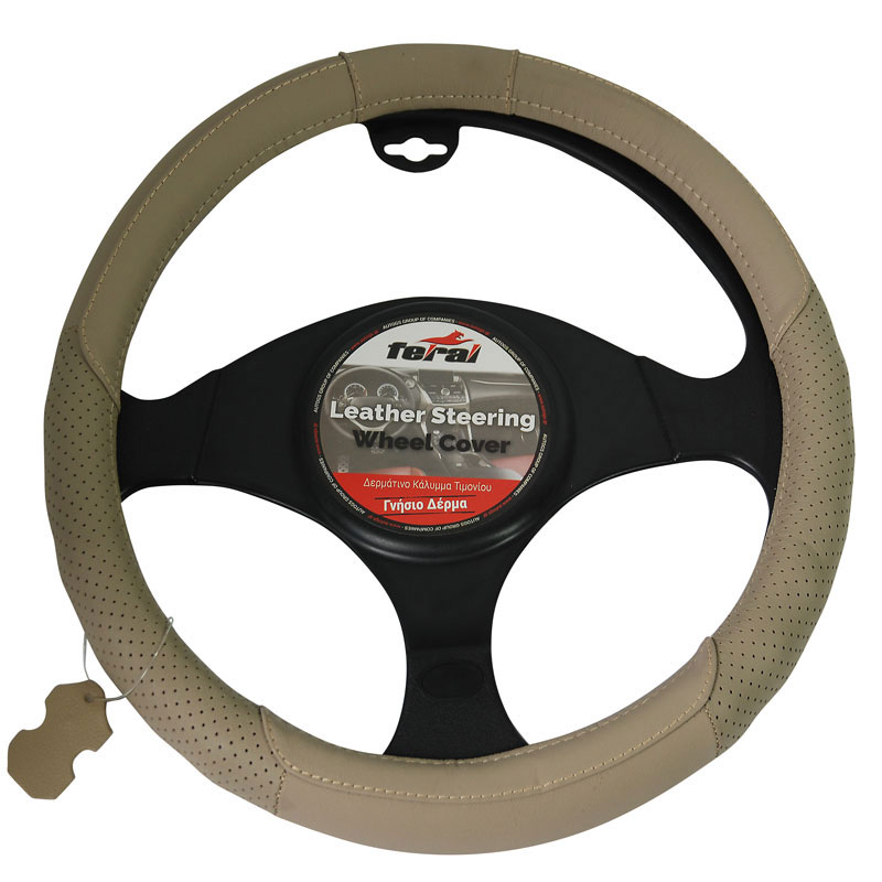Κάλυμμα Τιμονιού Αυτοκινήτου Δερμάτινο Λείο Τρυπητό Μπεζ Medium 38cm