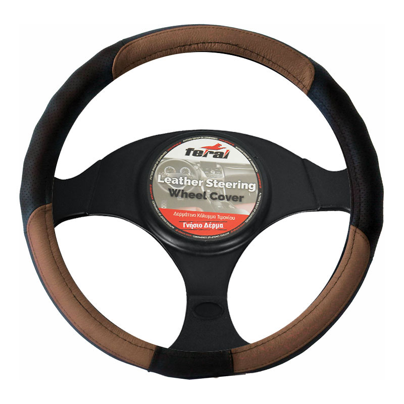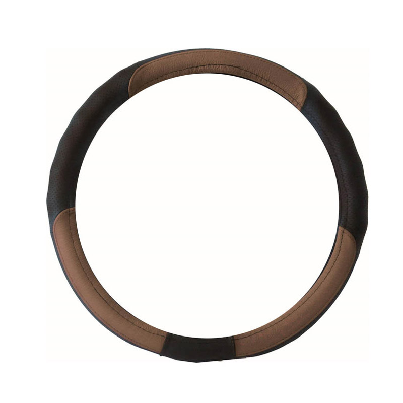 Κάλυμμα Τιμονιού Αυτοκινήτου Δερμάτινο Λείο Τρυπητό ΜαύροΚαφέ Medium 38cm
